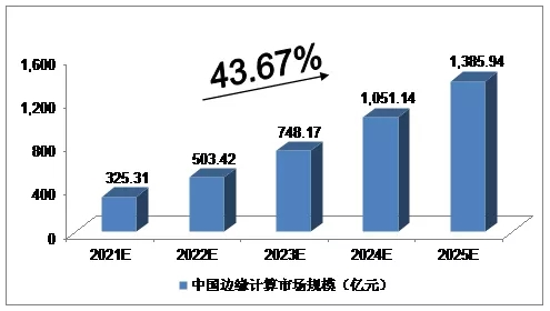 我们预计,2021年我国边缘计算市场规模将达到325.31亿元,未来五年(2021-2025)年均复合增长率约为43.67%,2025年将达到1,385.94亿元。