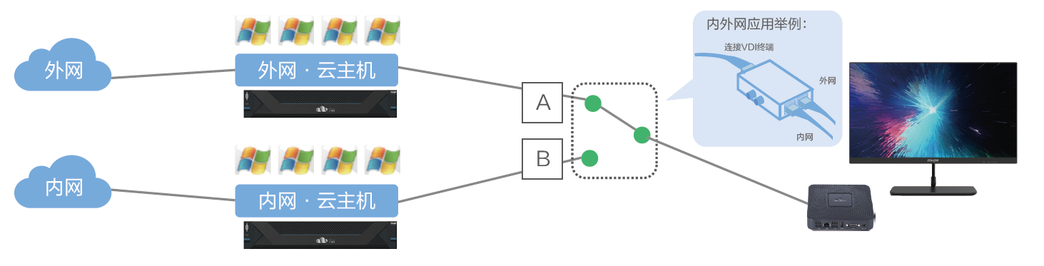 4、 一机双网办公:内外网VDI云桌面灵活切换