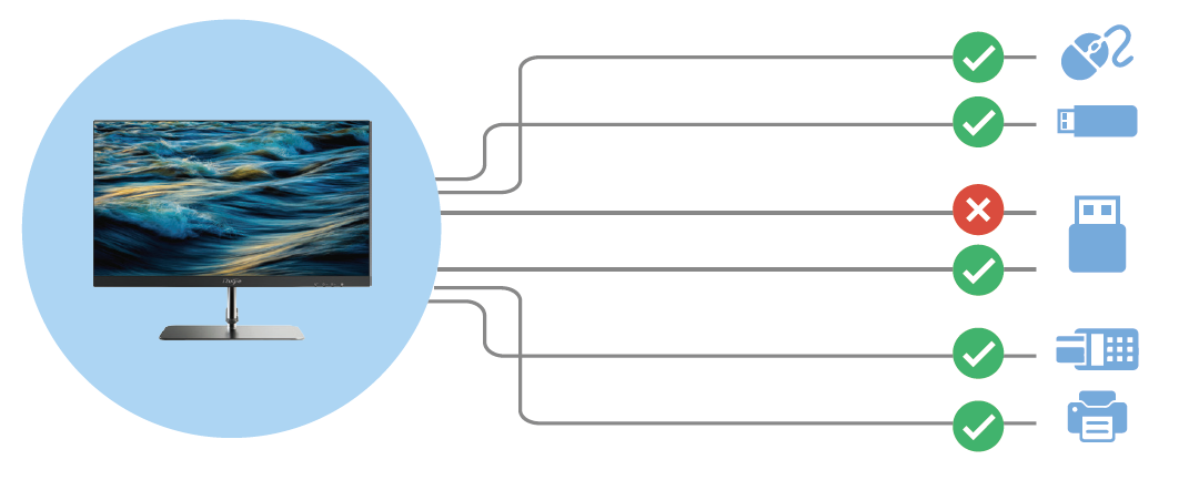 l 外设策略跟随用户,在不同终端上受同样的策略限制可自定义添加新的外设类型