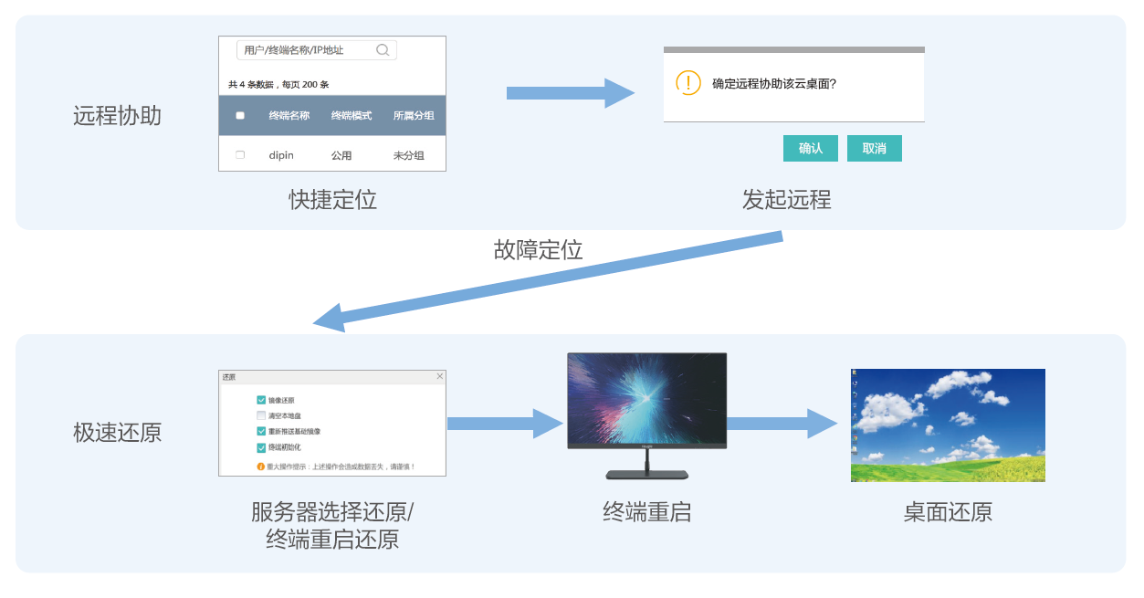 3、 故障快速还原:远程便捷协助,系统还原,个人数据完美保留
